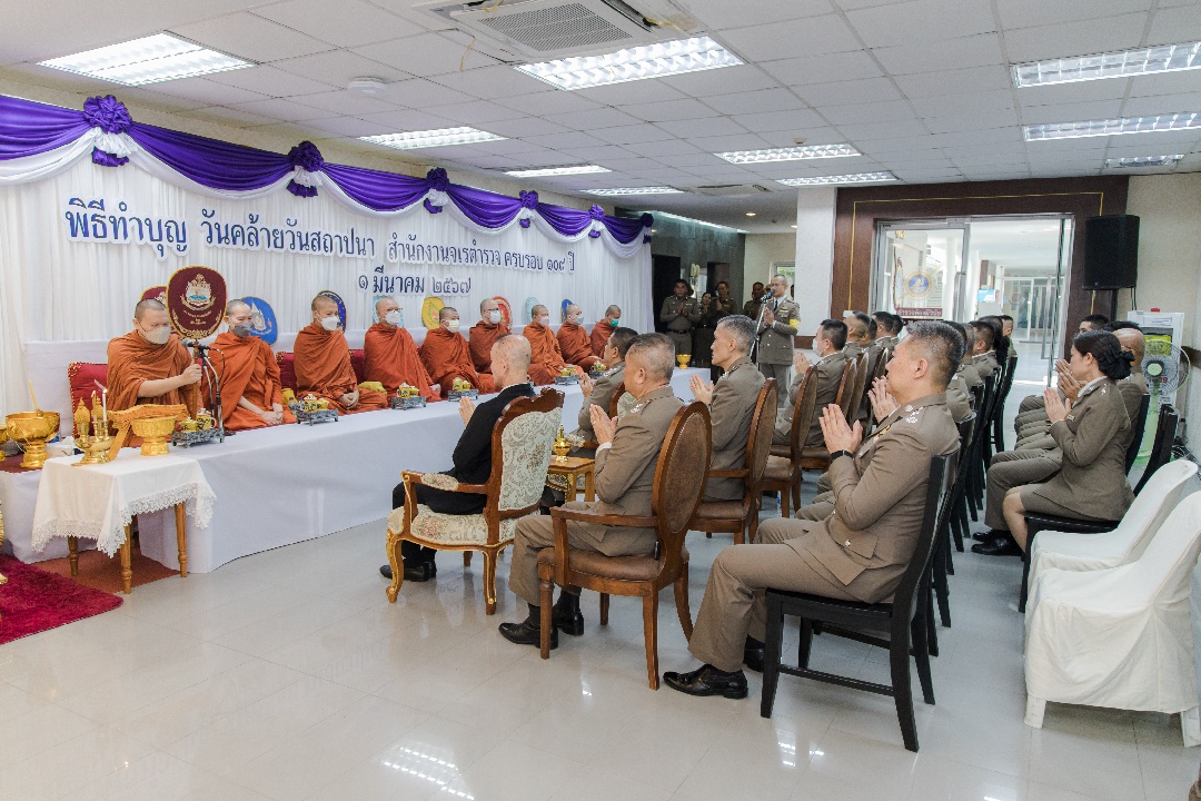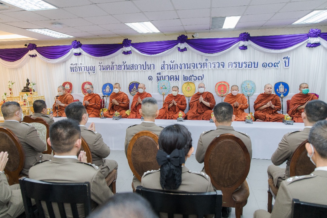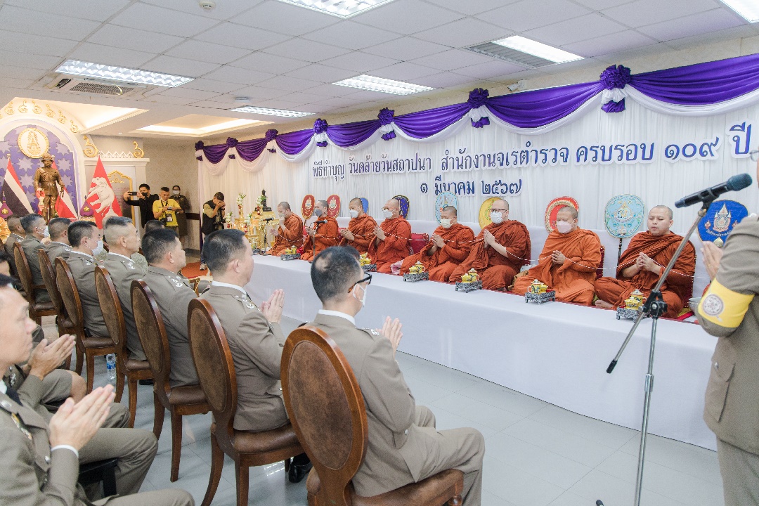 วันที่ 1 มี.ค.67 เวลา 08.30 น. พล.ต.ท.สุรพงษ์ ชัยจันทร์ รอง จตช., พล.ต.ท.ธนพล ศรีโสภา จตร.(หน.จต.), พล.ต.ท.สรศักดิ์ เย็นเปรม ประธาน ก.ร.ตร. ร่วมเป็นประธานในพิธีทำบุญเนื่องในวันสถาปนา จต. ครบรอบ 109 ปี โดยร่วมกับผู้บังคับบัญชาและข้าราชการตำรวจในสังกัด จต. สักการะสิ่งศักดิ์สิทธิ์และพิธีบำเพ็ญกุศลทักษิณานุปทานและเจริญพระพุทธมนต์ ณ ห้องโถงชั้น 1 จต.