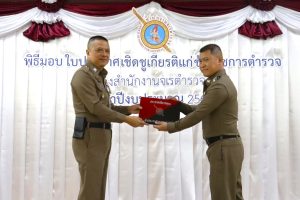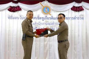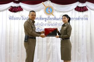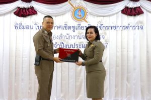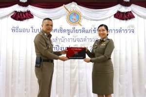 วันที่ 14 พฤศจิกายน พ.ศ.2567 พลตำรวจโท ธนพล ศรีโสภา จเรตำรวจ(หัวหน้าจเรตำรวจ) ได้ให้เกียรติเป็นประธานในพิธีมอบใบประกาศเชิดชูเกียรติแก่ข้าราชการตำรวจในสังกัดสำนักงานจเรตำรวจ ที่ประพฤติปฏิบัติดีเยี่ยมตามประมวลจริยธรรมและจรรยาบรรณของตำรวจ สมควรได้รับการยกย่องเชิดชูเกียรติเพื่อเป็นแบบอย่างที่ดี ประจำปีงบประมาณ พ.ศ.2567 ณ ห้องประชุมชั้น 4 สำนักงานตรวจสอบภายใน สำนักงานตำรวจแห่งชาติ