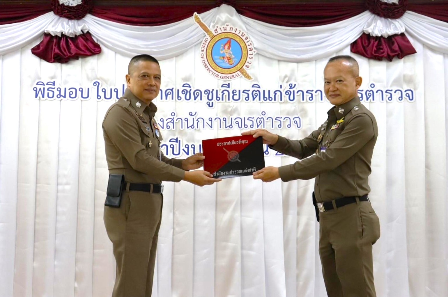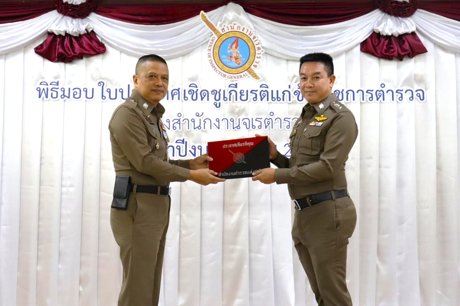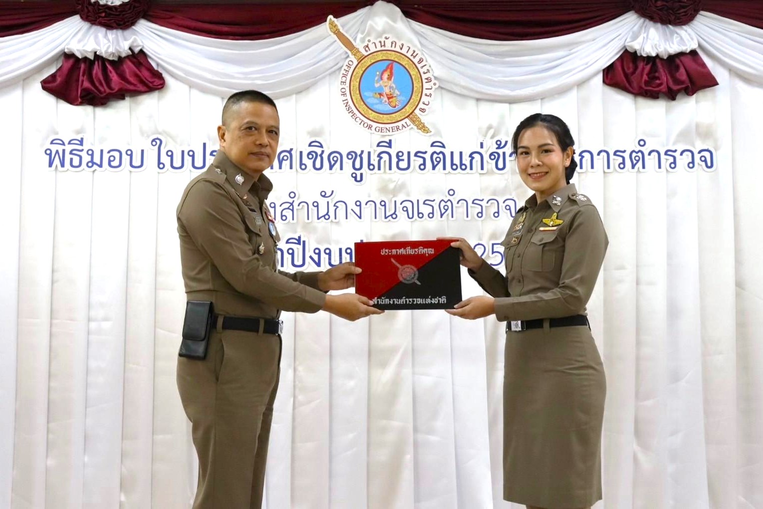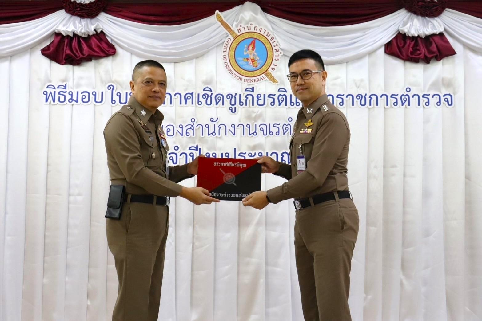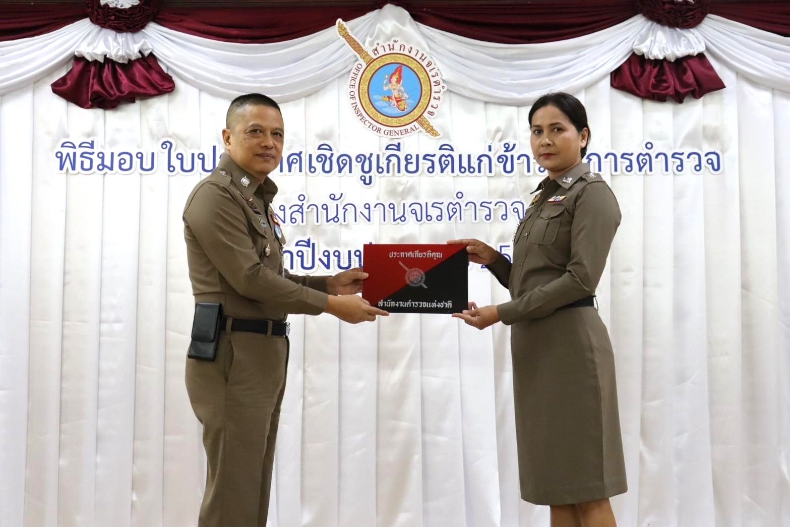 วันที่ 14 พฤศจิกายน พ.ศ.2567 พลตำรวจโท ธนพล ศรีโสภา จเรตำรวจ(หัวหน้าจเรตำรวจ) ได้ให้เกียรติเป็นประธานในพิธีมอบใบประกาศเชิดชูเกียรติแก่ข้าราชการตำรวจในสังกัดสำนักงานจเรตำรวจ ที่ประพฤติปฏิบัติดีเยี่ยมตามประมวลจริยธรรมและจรรยาบรรณของตำรวจ สมควรได้รับการยกย่องเชิดชูเกียรติเพื่อเป็นแบบอย่างที่ดี ประจำปีงบประมาณ พ.ศ.2567 ณ ห้องประชุมชั้น 4 สำนักงานตรวจสอบภายใน สำนักงานตำรวจแห่งชาติ