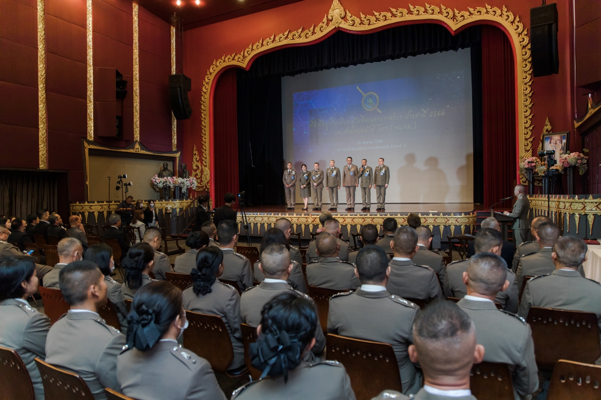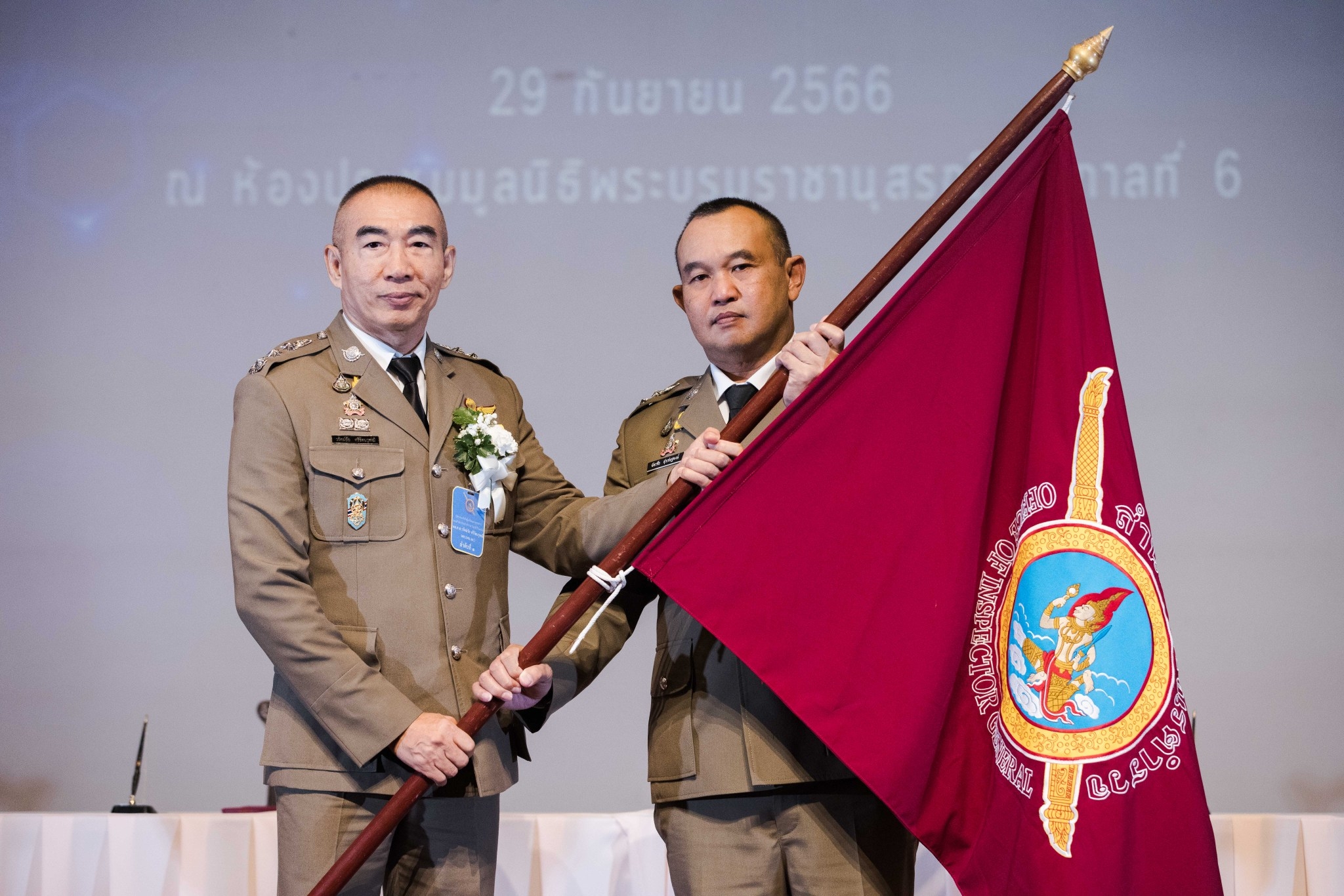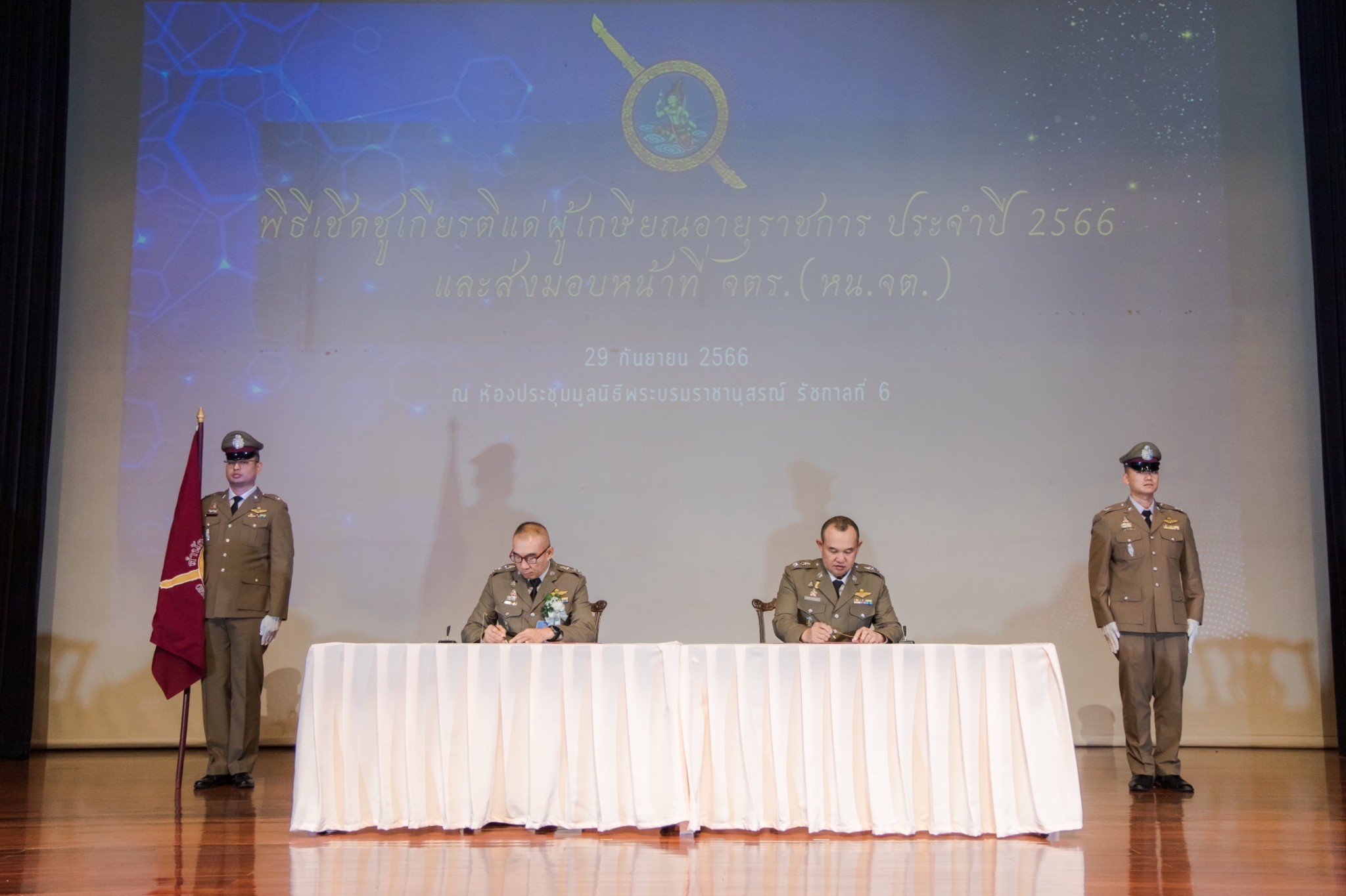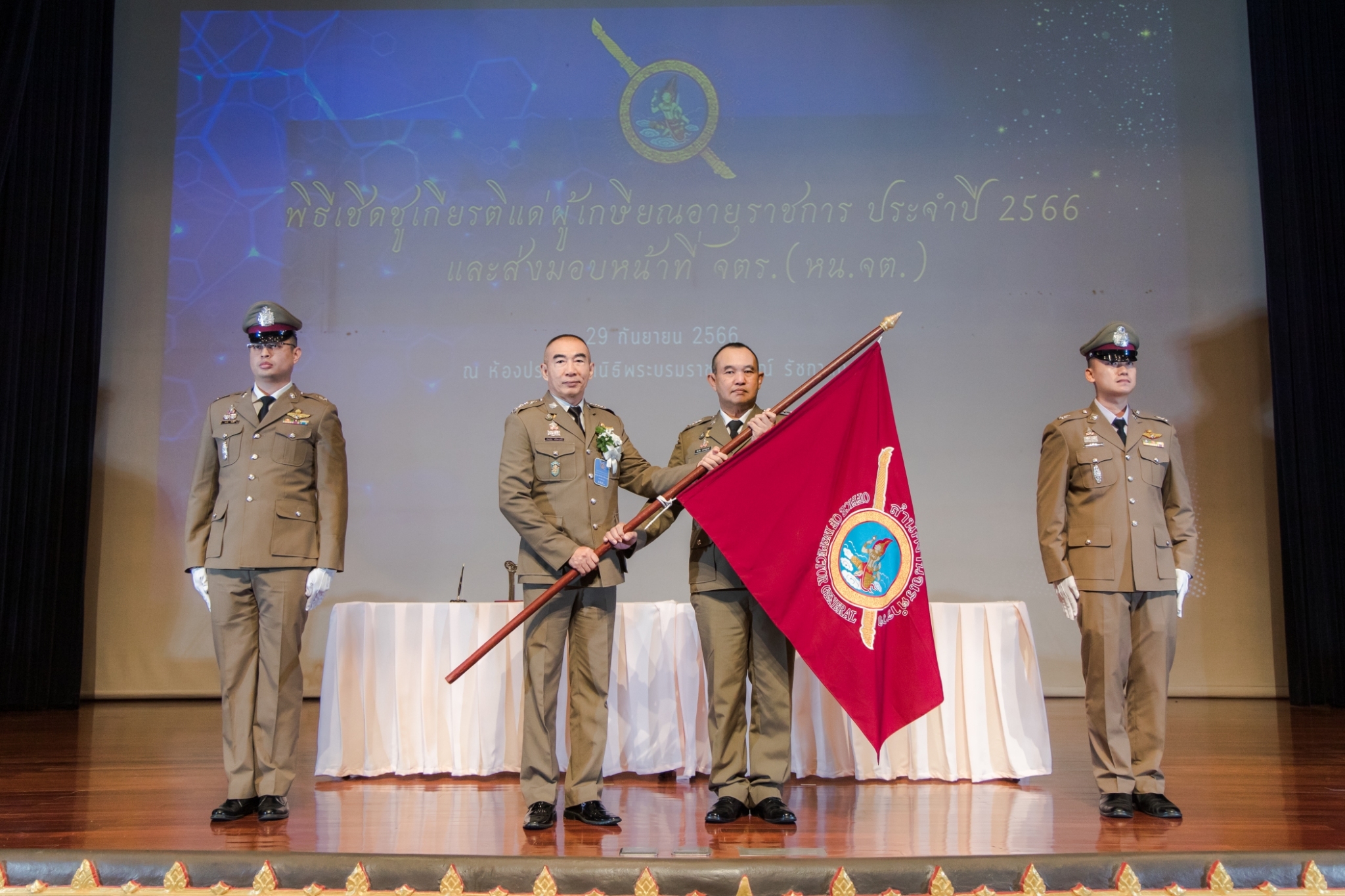 ประมวลภาพพิธีเชิดชูเกียรติแด่ผู้เกษียณอายุราชการ ประจำปี 2566 และส่งมอบหน้าที่ จเรตำรวจ (หัวหน้าจเรตำรวจ) เมื่อวันที่ 29 กันยายน 2566 ณ ห้องประชุมมูลนิธิพระบรมราชานุสรณ์ พระบาทสมเด็จพระมงกุฎเกล้าเจ้าอยู่หัว ในพระบรมราชูปถัมภ์ ถนนสามเสน แขวงวชิรพยาบาล เขตดุสิต กรุงเทพฯ