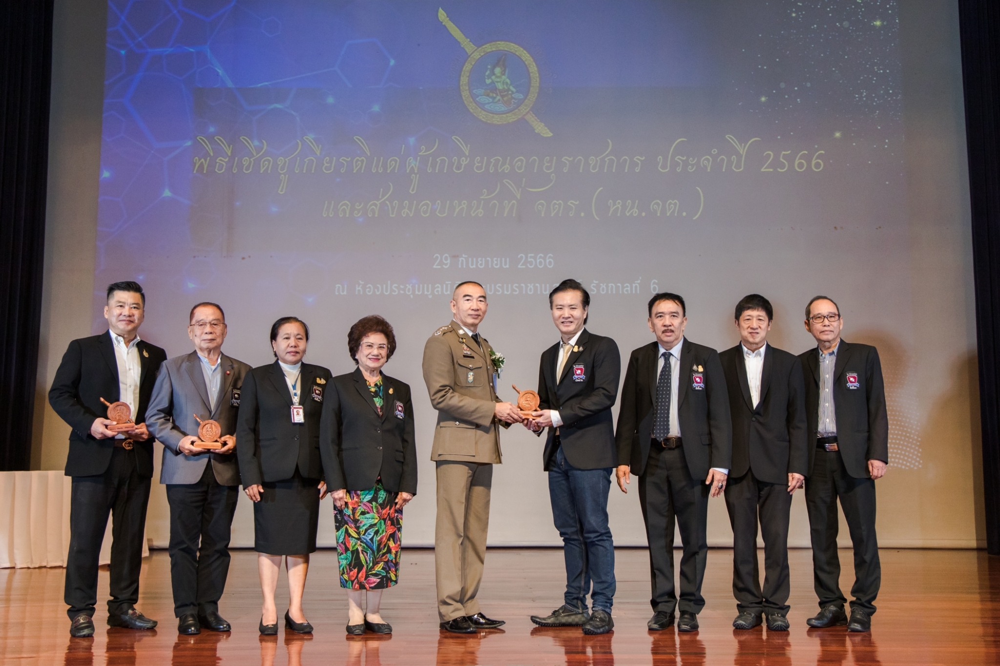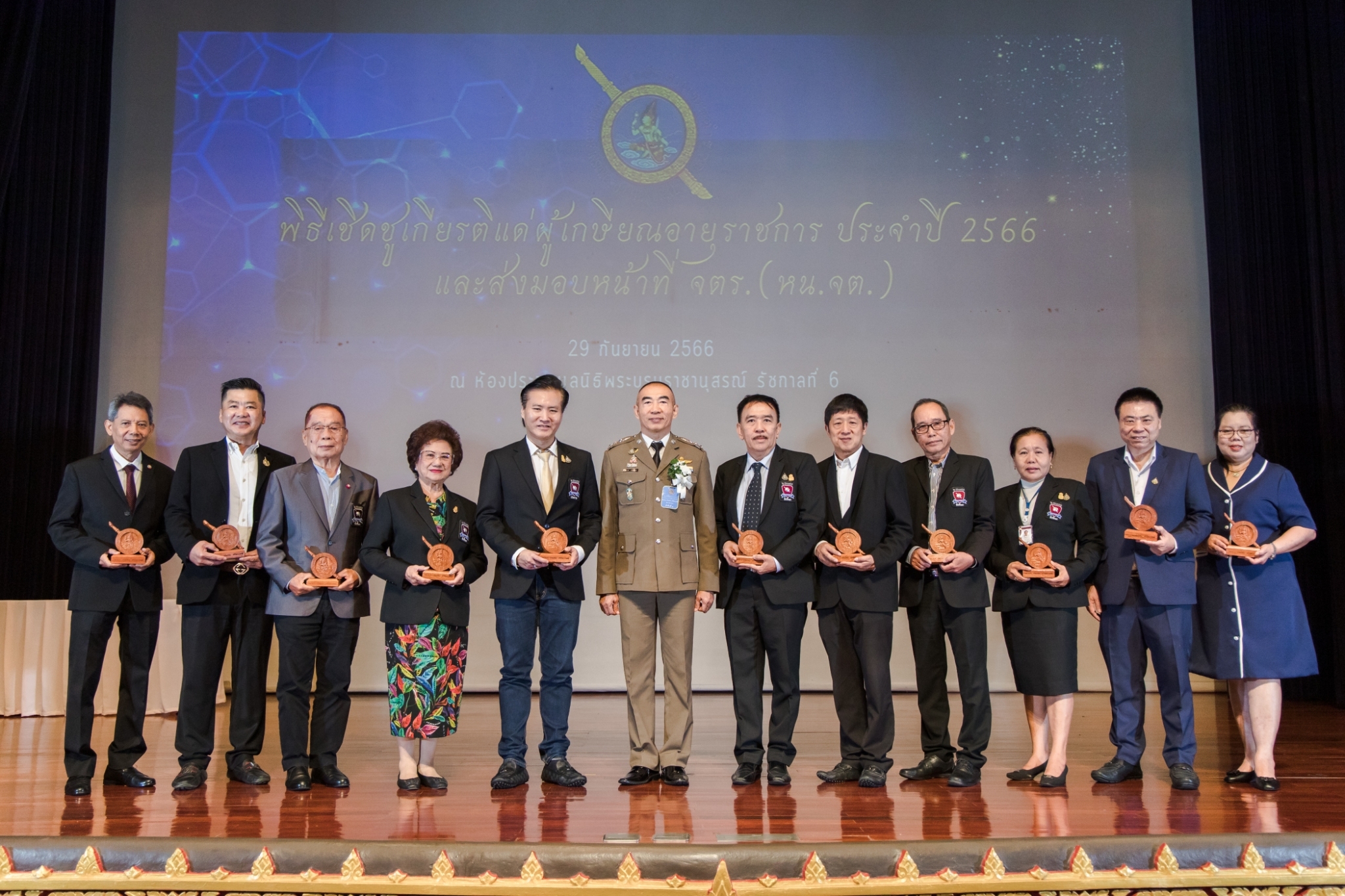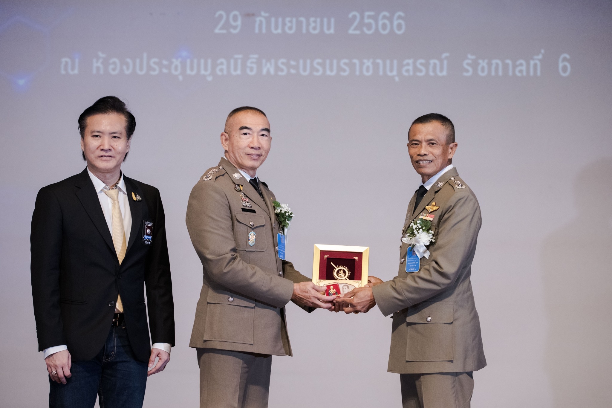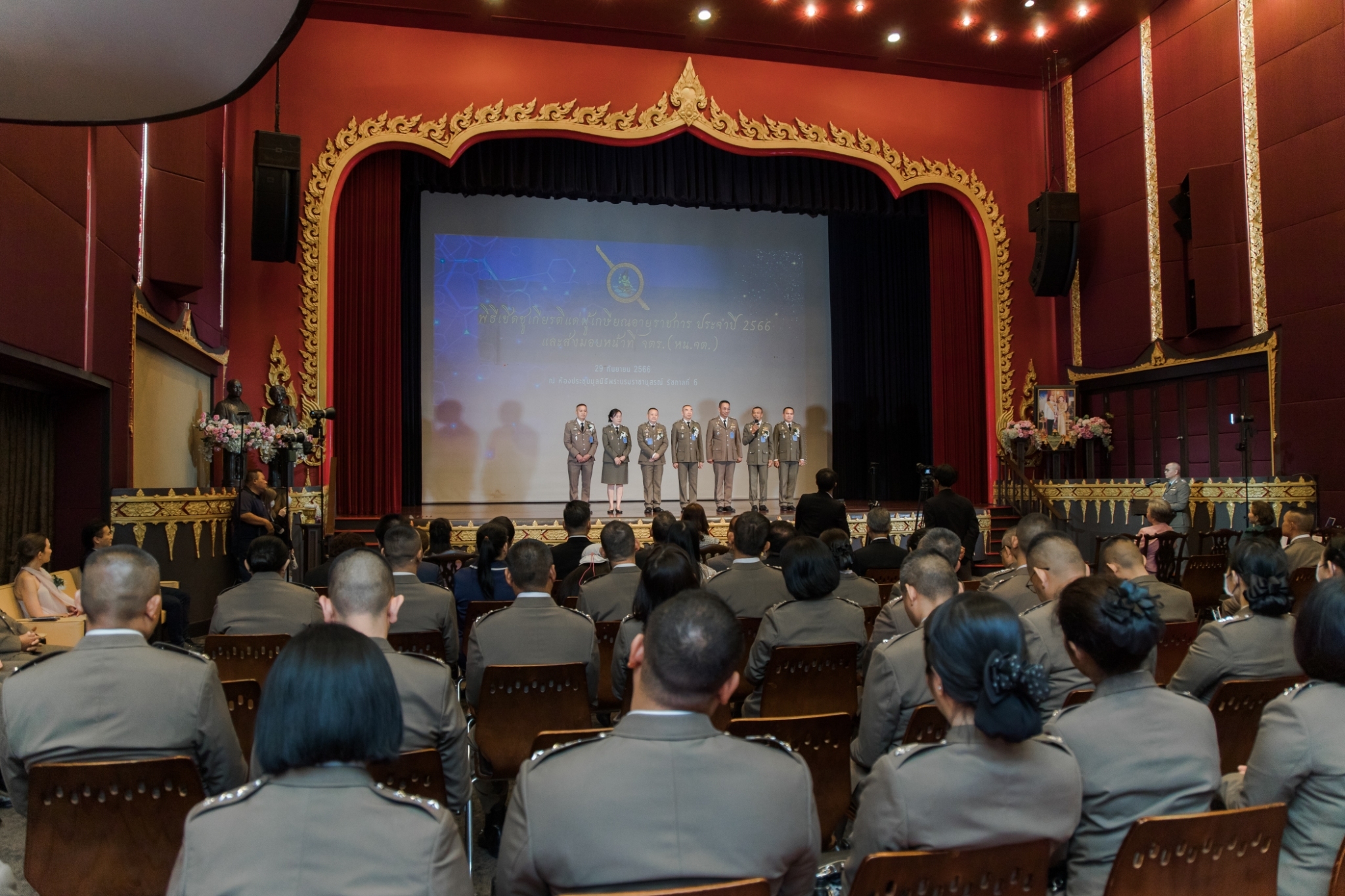 ประมวลภาพพิธีเชิดชูเกียรติแด่ผู้เกษียณอายุราชการ ประจำปี 2566 และส่งมอบหน้าที่ จเรตำรวจ (หัวหน้าจเรตำรวจ) เมื่อวันที่ 29 กันยายน 2566 ณ ห้องประชุมมูลนิธิพระบรมราชานุสรณ์ พระบาทสมเด็จพระมงกุฎเกล้าเจ้าอยู่หัว ในพระบรมราชูปถัมภ์ ถนนสามเสน แขวงวชิรพยาบาล เขตดุสิต กรุงเทพฯ