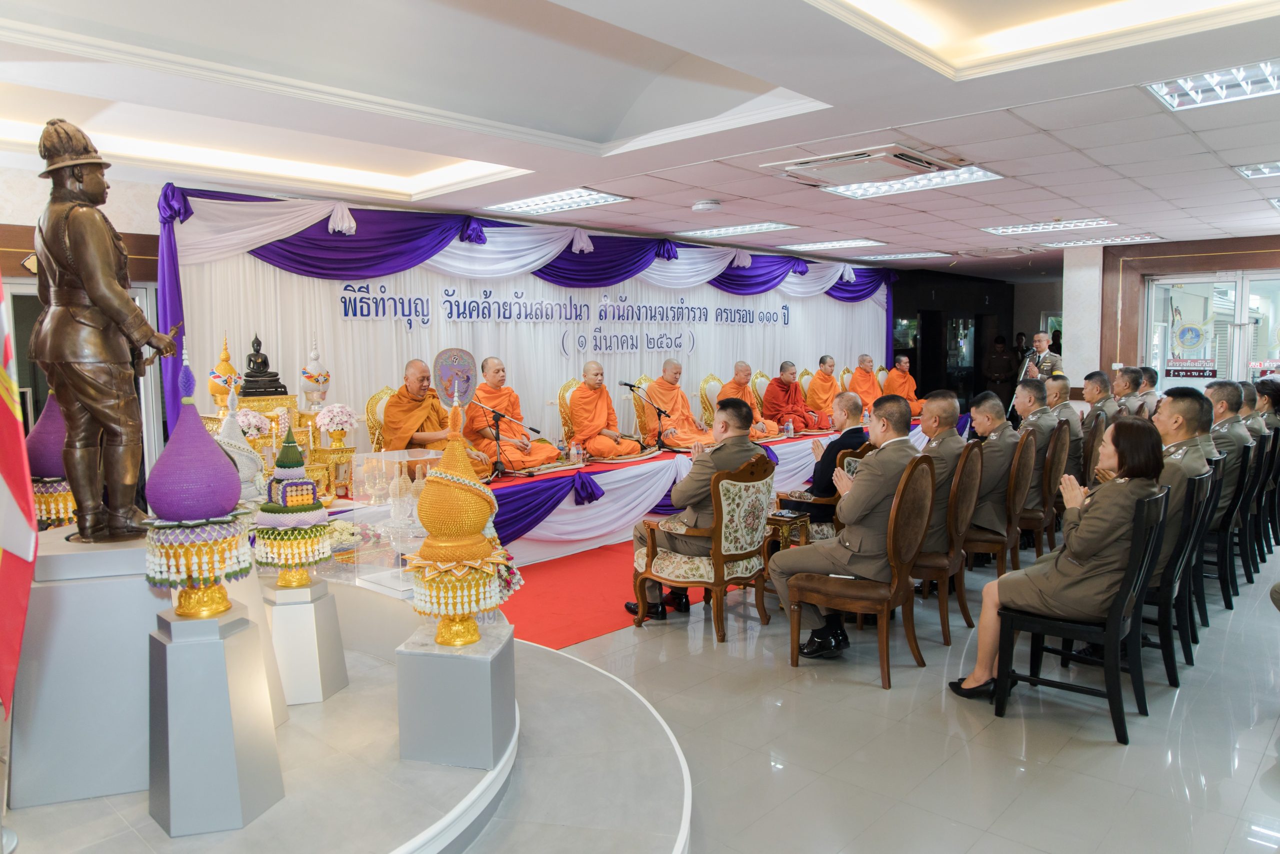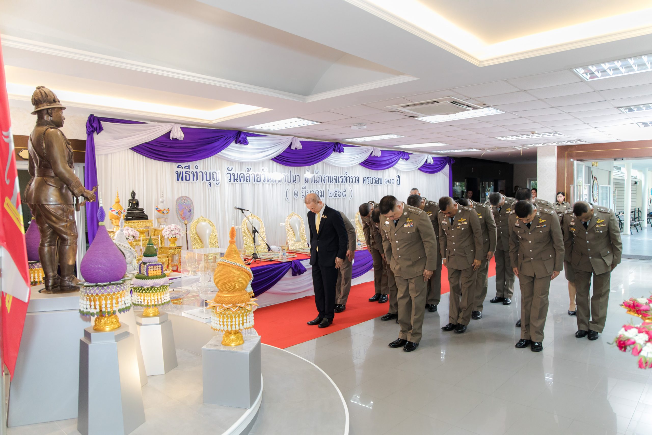วันที่ 28 ก.พ.68 เวลา 07.30 น. สำนักงานจเรตำรวจได้จัดงานวันคล้ายวันสถาปนาสำนักงานจเรตำรวจ ครบรอบ 110 ปี โดยมี พล.ต.ท. บัณฑิต ตุงคะเศรณี จตร. (หน.จต.) และ พล.ต.ท. สรศักดิ์ เย็นเปรม ประธาน ก.ร.ตร. เป็นประธานในพิธี พร้อมด้วย ผู้บังคับบัญชาในสังกัด และข้าราชการตำรวจในสังกัด เข้าร่วมพิธี ณ สถานที่สักการะสิ่งศักดิ์สิทธิ์ประจำสำนักงานจเรตำรวจ และพิธีสงฆ์ โดยมีพระราชพัฒนากร ชินวรสุวรรณประสิทธิโกศล มหาคณิสสร บวรสังฆาราม คามวาสี (หลวงพ่อสมชาย ฉันทสโร) เจ้าอาวาสวัดปริวาสราชสงคราม กรุงเทพมหานคร เป็นประธานสงฆ์