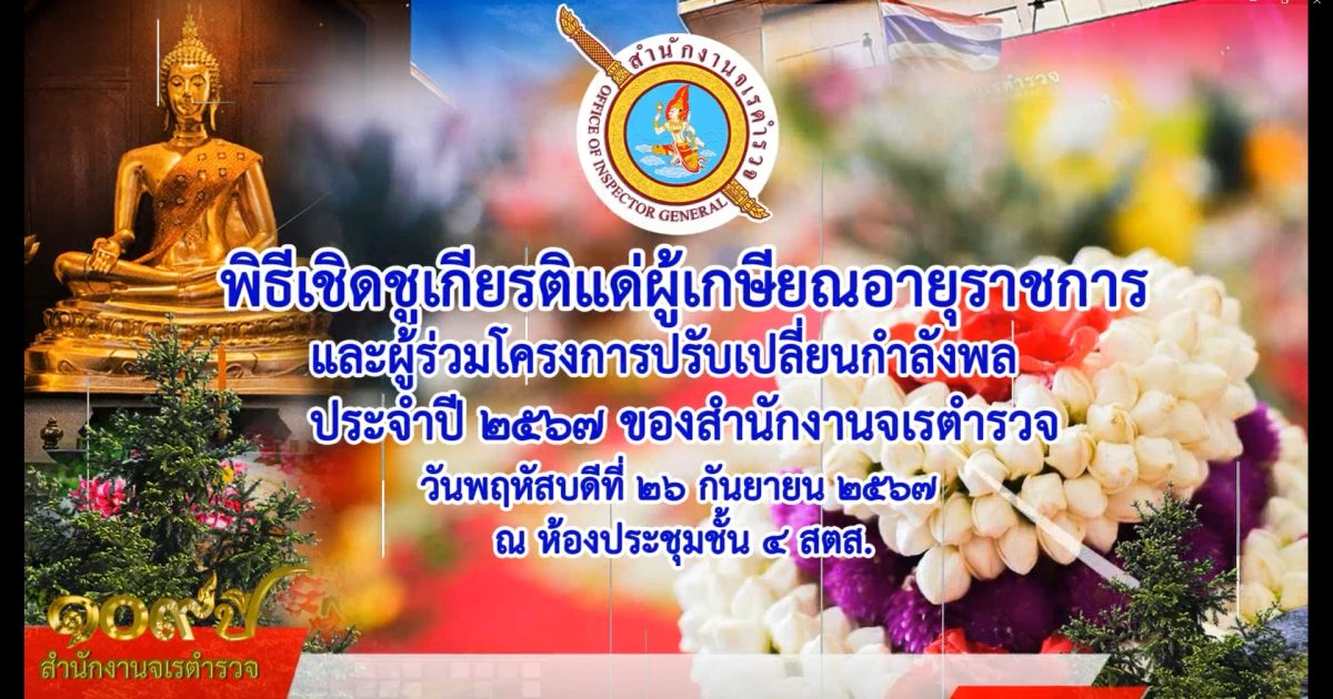 (วีดิทัศน์) พิธีเชิดชูเกียรติแด่ผู้เกษียณอายุราชการ ประจำปี 2567 ของสำนักงานจเรตำรวจ