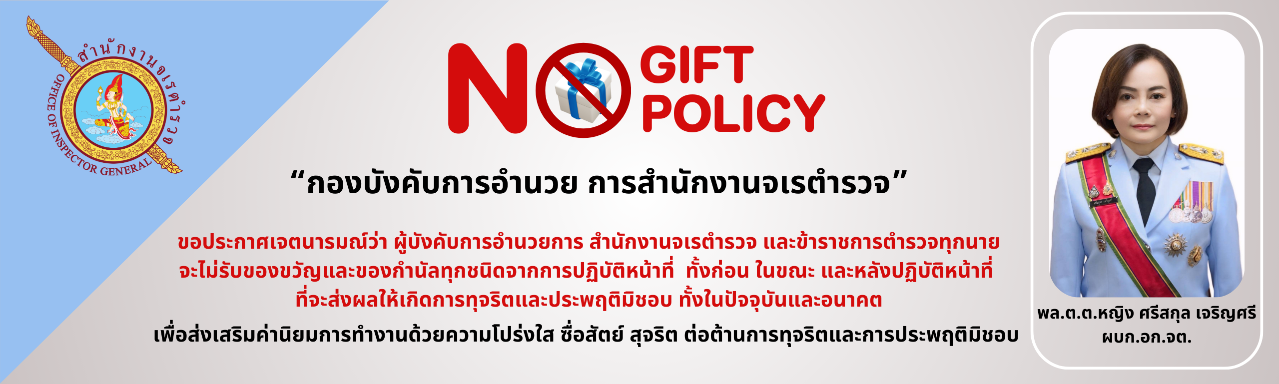 - ประกาศสำนักงานจเรตำรวจ เรื่อง เจตนารมณ์ในการป้องกันการทุจริตของสำนักงานจเรตำรวจ ลงวันที่ 29 เมษายน 2564